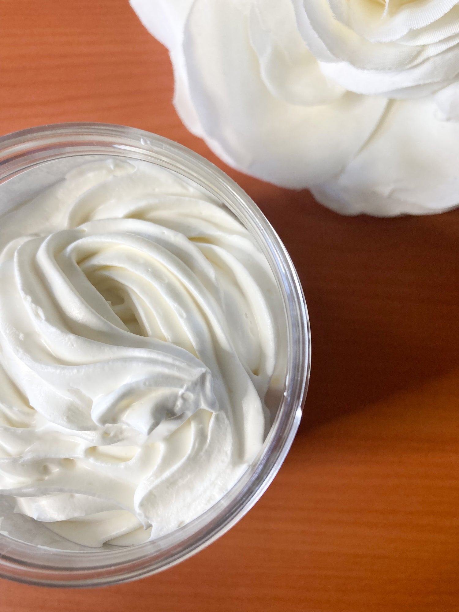 Distilled Water, Vegetable Glycerine, Emulsifying Wax, Apricot Kernel Oil, Shea Butter, Cetyl Alcohol, Preservative, and fragrance.